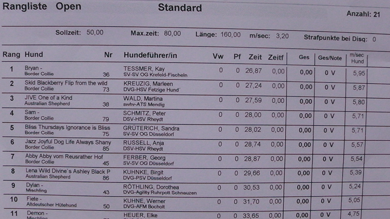 Melanie Richartz hat wie gewohnt sehr schöne, faire und gleichzeitig anspruchsvolle Parcoure gestellt und die Turnierorganisation des DVG Agility Dogs Tönisvorst war super... bis auf eine kleine Ausnahme (dazu später mehr).