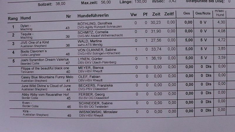 Nach 6-wöchiger Turnierpause sind wir am Wochenende wieder beim MV Mülheim-Speldorf gestartet. Erwartungsgemäß benötigten beide Hunde eine kleine Einge-wöhnungsphase: Soukie, um sich wieder mit der Turnieratmosphäre anzufreunden und Jive, um den Gerüchen und sonstigen Ablenkungen zu widerstehen.